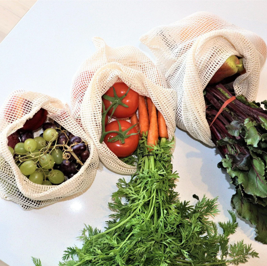 The mesh bags are wonderful for fruit, vegetables, herbs and baked goods, completely eliminating the need for plastic.